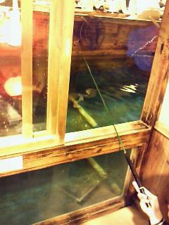 周りは水槽になっていて魚が泳いでます。