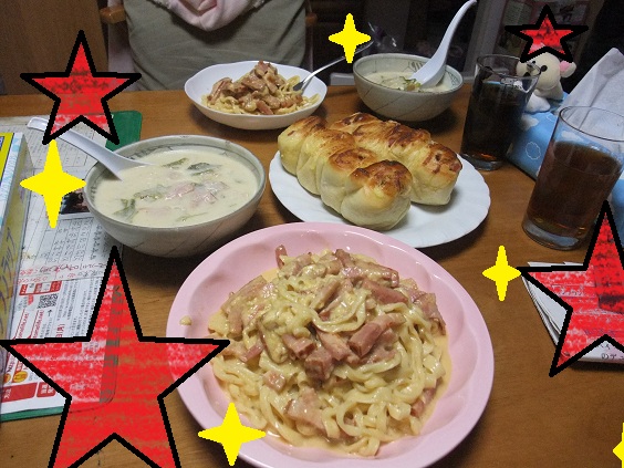 あと同時進行でパンも焼きクリームスープも作った